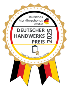 Der „Deutsche Handwerkspreis“ ist ein hochwertiges Qualitätssiegel, das ausschließlich an Handwerker verliehen wird, die in allen Bereichen herausragende Leistungen erbringen. Es steht für höchste Standards. Dieses Siegel symbolisiert nicht nur eine Auszeichnung, sondern auch das Vertrauen der Kunden in ein außergewöhnliches Erlebnis.